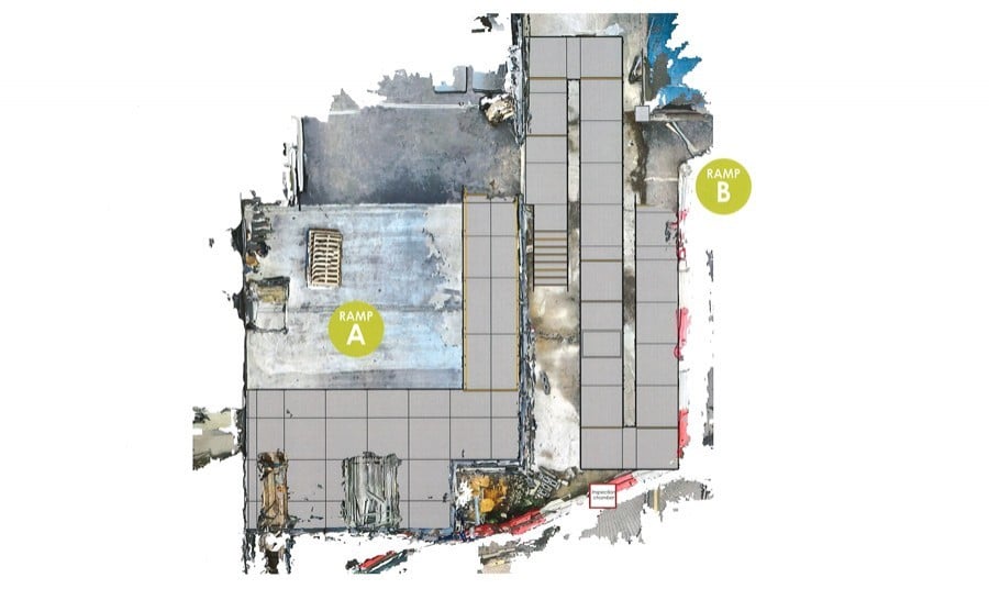 Ramp A connects to the fire exit door and incorporates underside mesh.