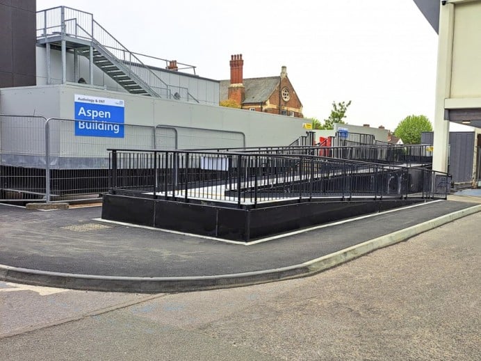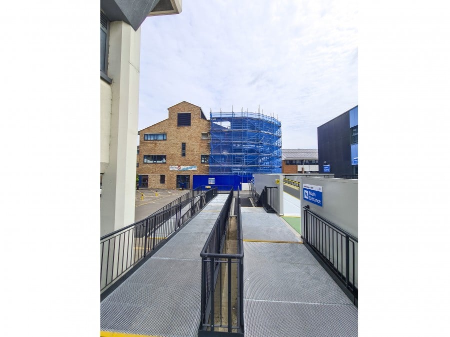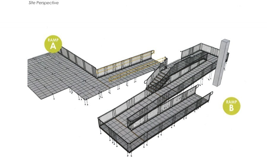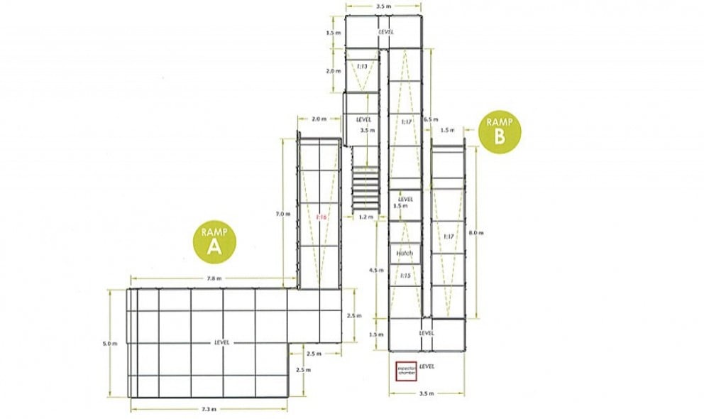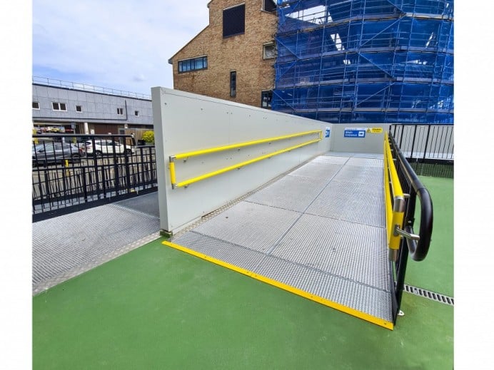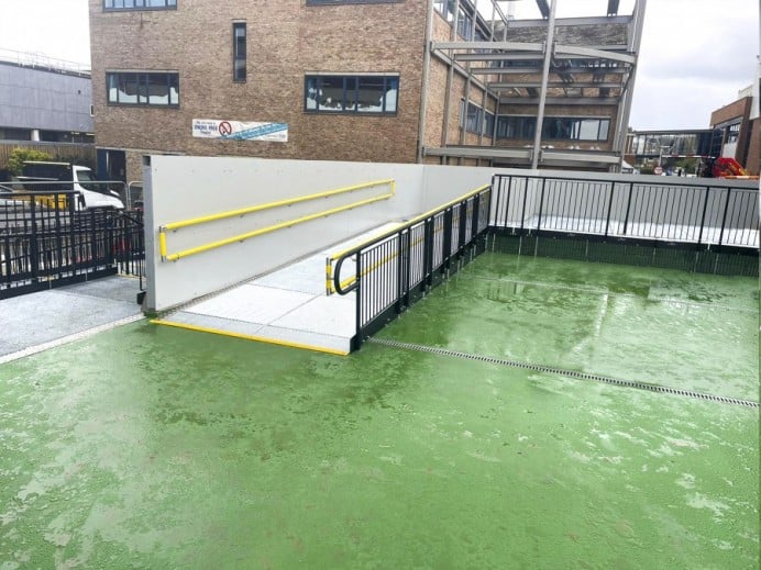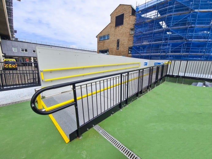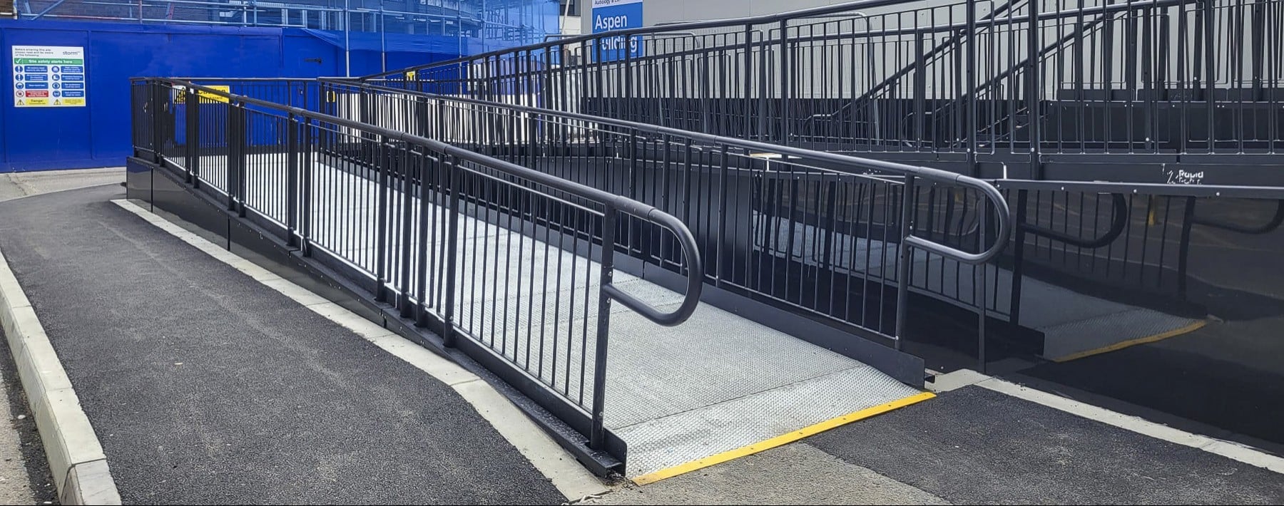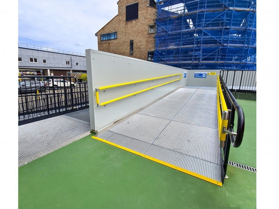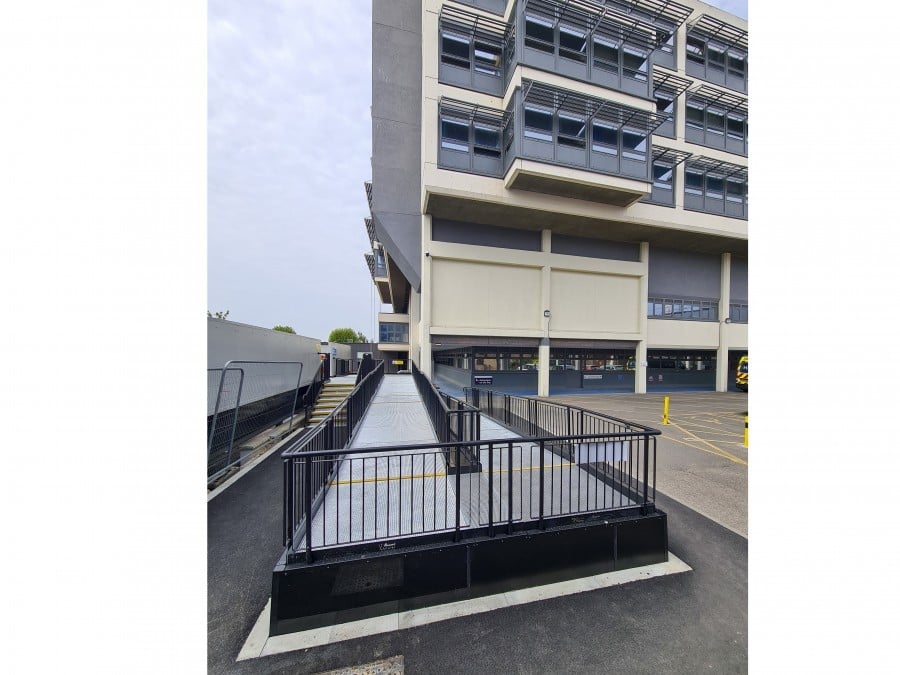 Ramp B incorporates multiple turning platforms, skilfully navigates around an obstruction, and includes an access hatch to enable staff entry into the inspection chamber beneath. Additionally, Ramp B seamlessly integrates a fully compliant step system.