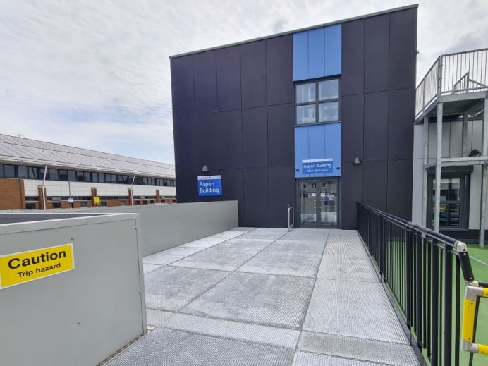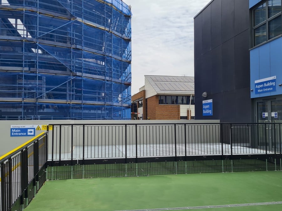 The new, fully accessible modular building, named the Aspen Building, is located at the centre of the hospital site, and contains dedicated audiology consultation rooms, laboratory and acoustic booths, examination and procedure rooms, a dedicated voice therapy room.