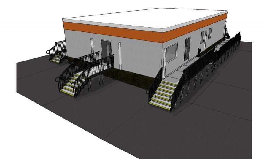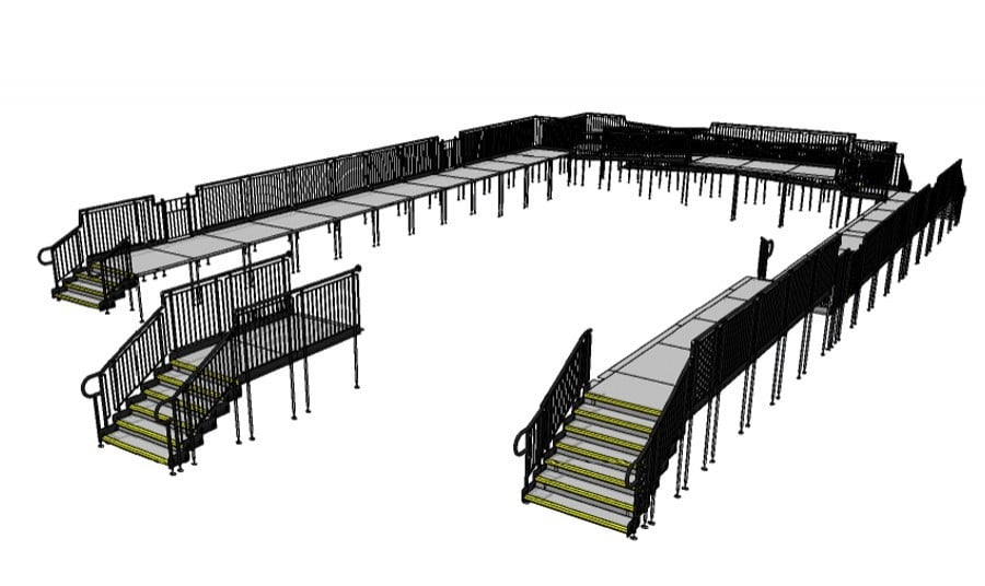 Rapid Ramp's modular walkway system is a high-quality, durable steel platform with powder-coated handrails.