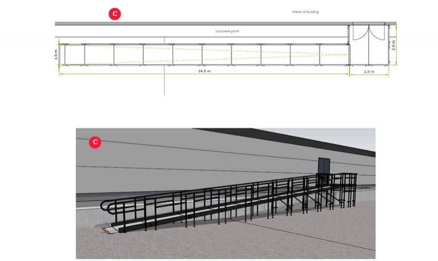 - Yellow Tread - this is a safety feature designed to help those with impaired vision identify the nose of the ramp and helps users distinguish any level changes.