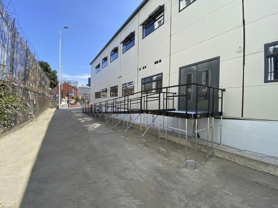 Throughout the duration of the build, temporary ramps & steps were required to the welfare facilities. These were used by the on-site workforce.