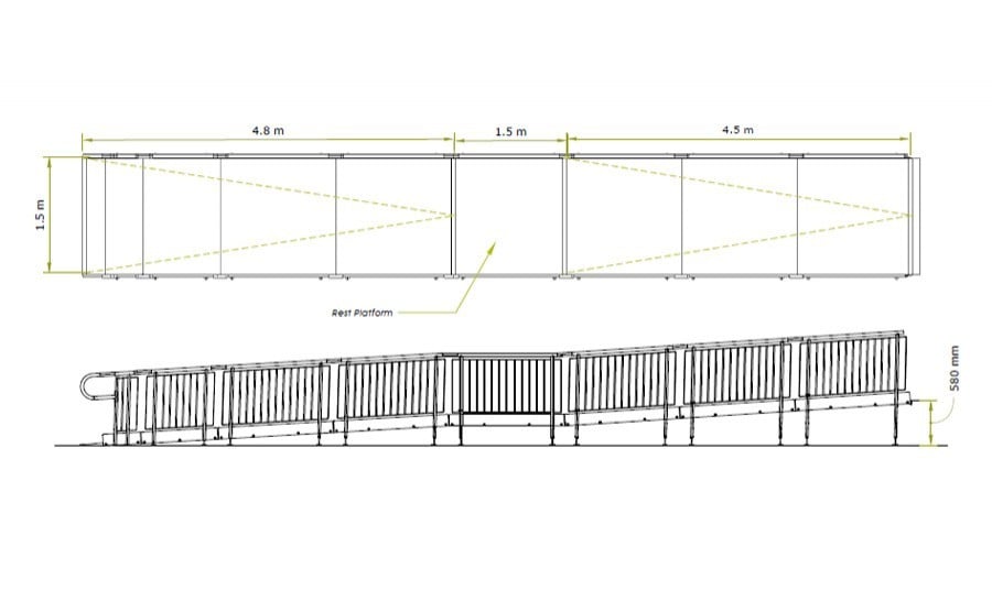Our installers fitted a Rapid Ramp, which included a pedestrian walkway with a loading capacity of 1,000kgs. It is designed to safely support the weight of varies public traffic, including walkers, prams, wheelchairs, and mobility scooters.