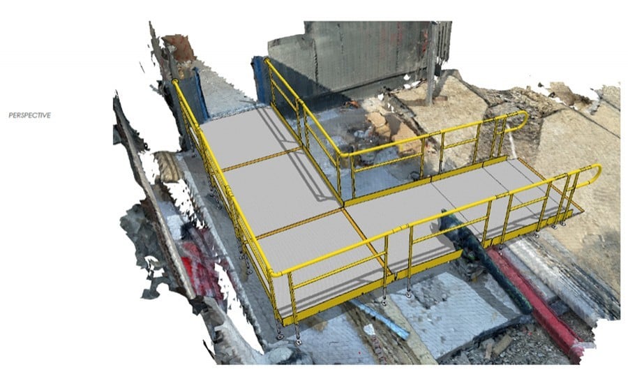 Our in-house designer then created a 3D visual of the ramp on top of the lidar model, ensuring to draw around any obstructions.