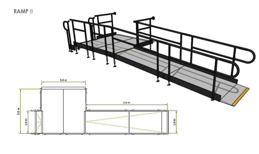 - Yellow Tread - this is a safety feature designed to help those with impaired vision identify the nose of the ramp. Additionally, it helps users distinguish any level changes.