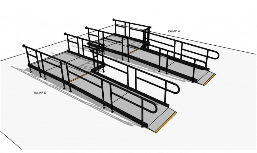 The Rapid Ramp System was concluded to be the best solution. It is manufactured from fully galvanised metal for corrosion resistance and has a slip-resistant mesh surface. Plus, all components (excluding the platforms and ramp legs) are powder-coated to create a durable finish.