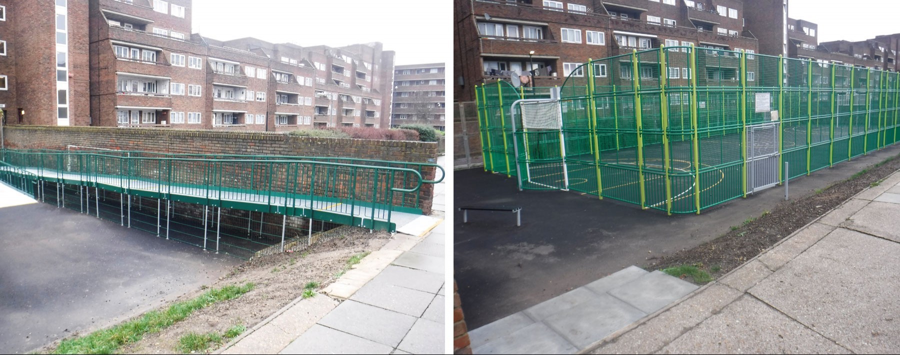 Outdoor wheelchair access from the road to the lower games area.