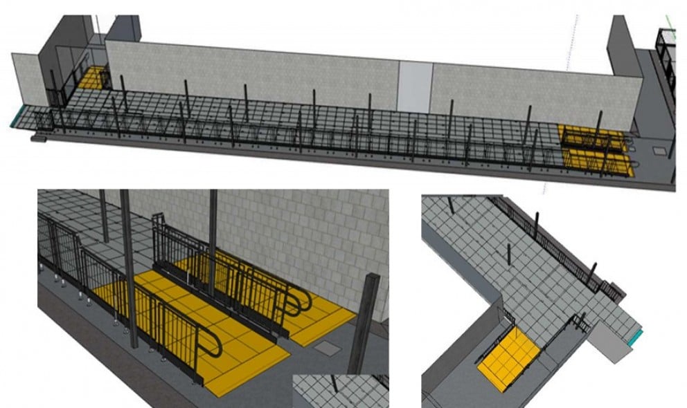 Our in-house design team developed detailed 3D models and 2D plans to clearly illustrate the layout of the walkway and ramps, designed to fit around the canopies, which were scheduled for installation beforehand.