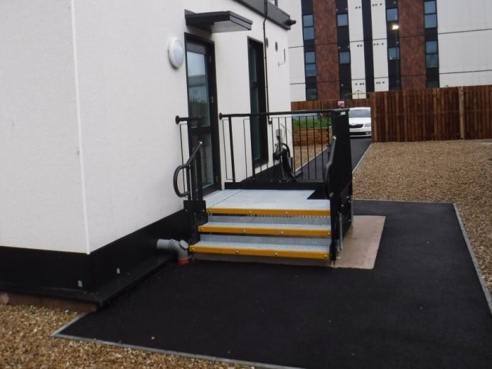 Our products have a much faster installation time than traditional materials like concrete, with a minimum drying time of 24 hours. Furthermore, our manufacturing is exclusively carried out in Britain, eliminating dependence on overseas support. All Rapid Ramp products comply with Part K and M of the Building Regulations.