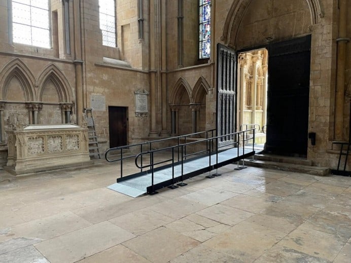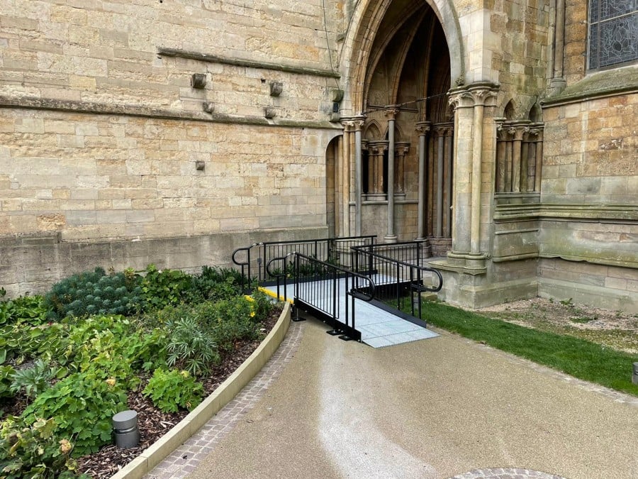 In order to enhance wheelchair accessibility to the cathedral, it was necessary to install both internal and external ramps to overcome the steps.