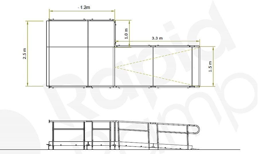 It incorporates a compliant 1:15 gradient and a platform that extends across the width of the disabled access door, providing ample space for wheelchair manoeuvring.