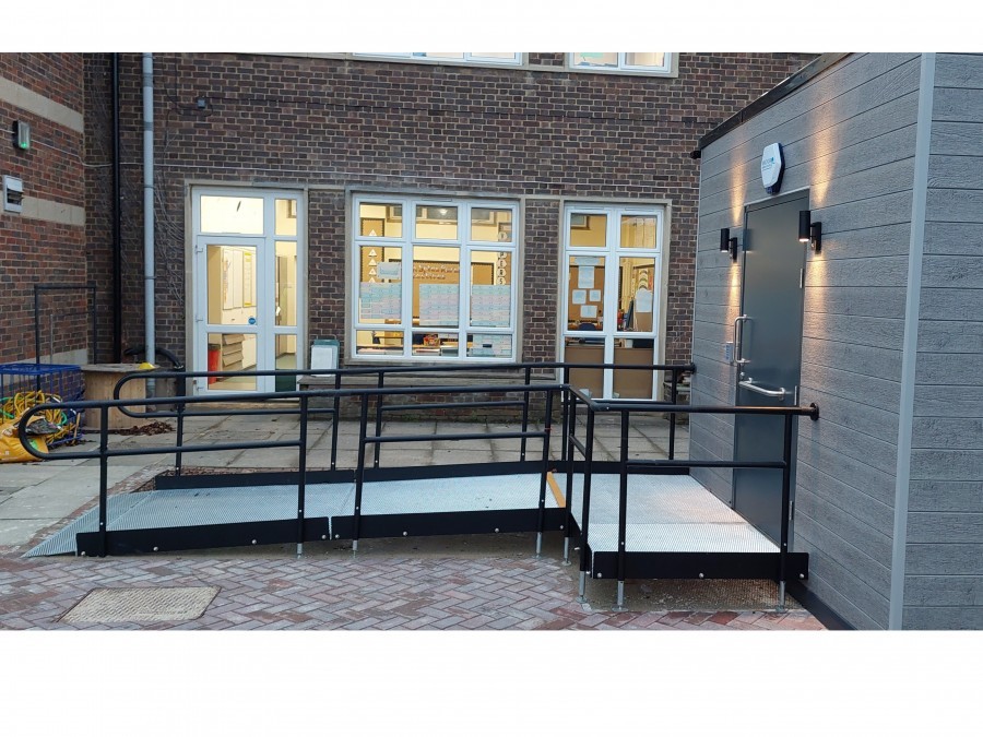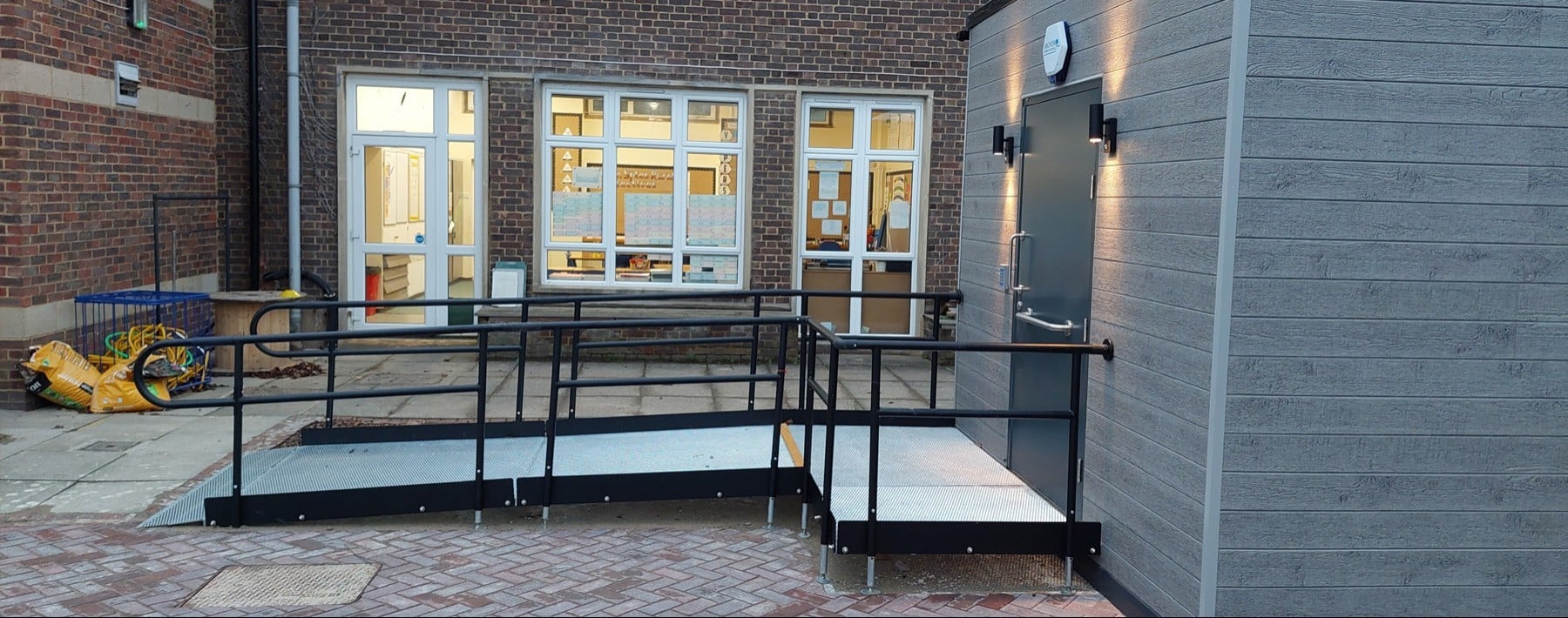 The ramp, landing, upstands, and handrails had to meet the stringent requirements outlined in Approved Documents K and M of the Building Regulations for full compliance.