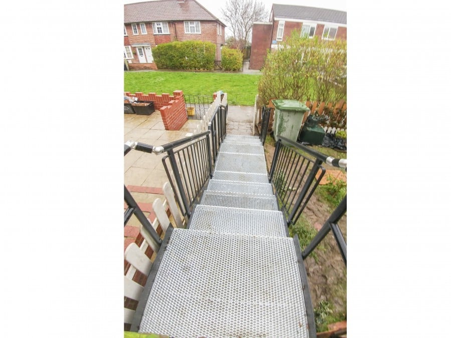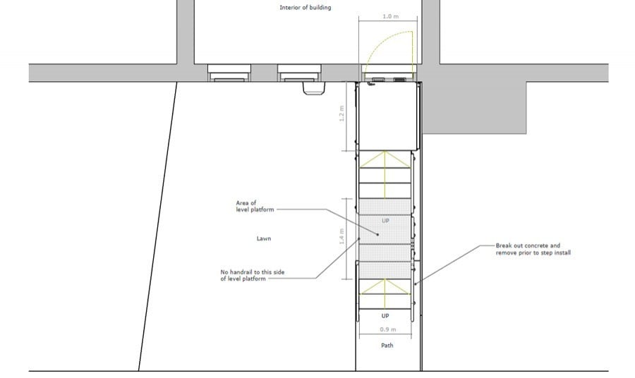 These would replace the existing bricked steps, that were difficult for the user to manage and offered no handrail support.
