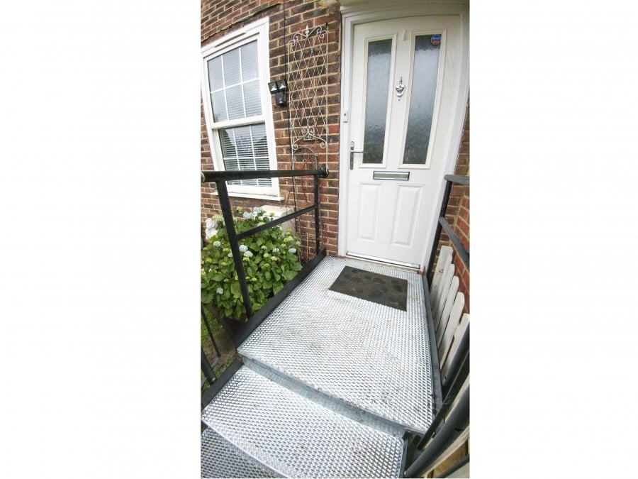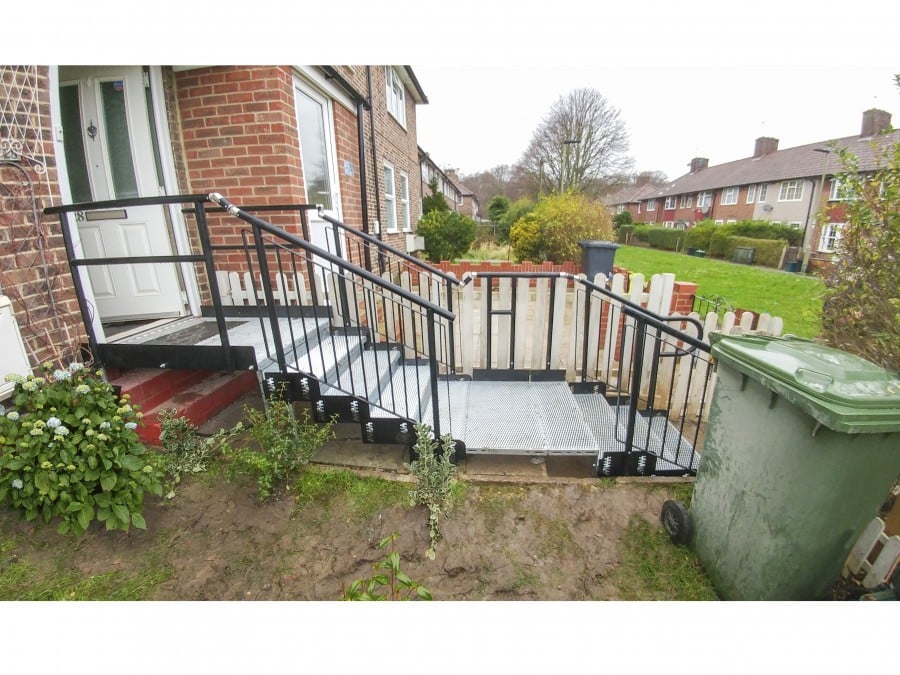 A low-level access platform between the two sets of steps was also included with only one side of handrail, to provide a gap to the front garden.