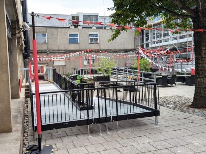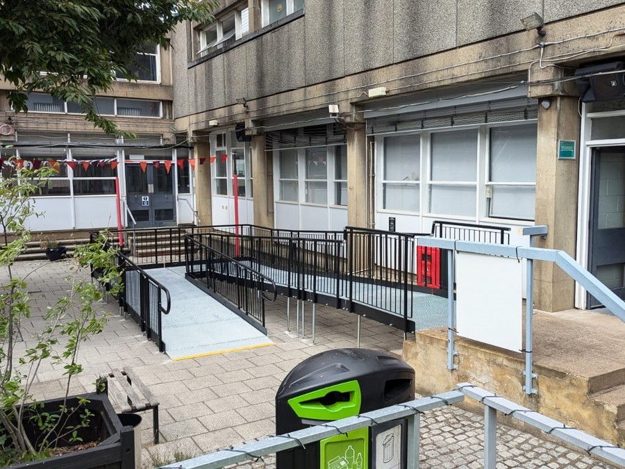 Design and install a fully compliant ramp to the entrance of the Rocket Complex, which functions as both a study space and event venue.
