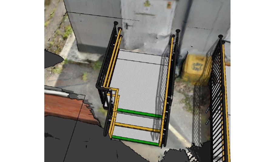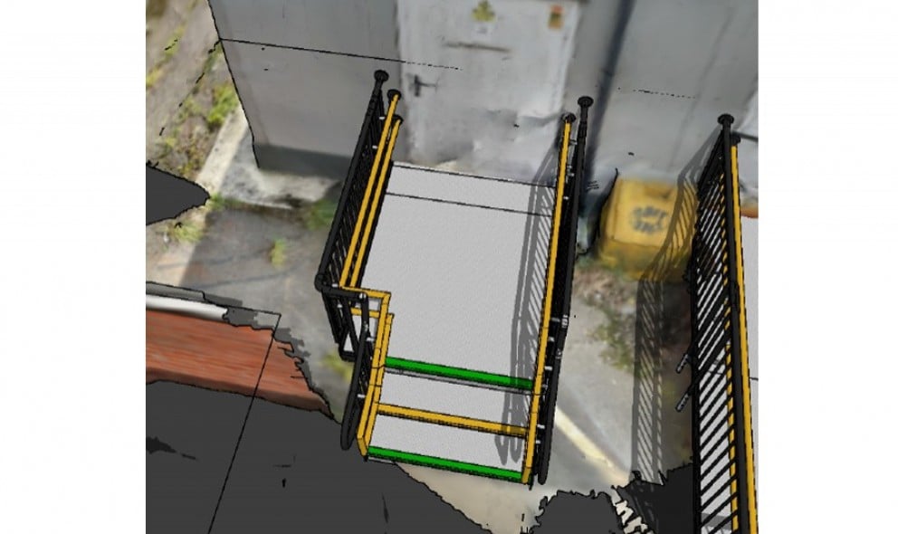 Once the photographing process was completed, our CAD designer plotted a 3D visual of the ramp on top of the lidar model.