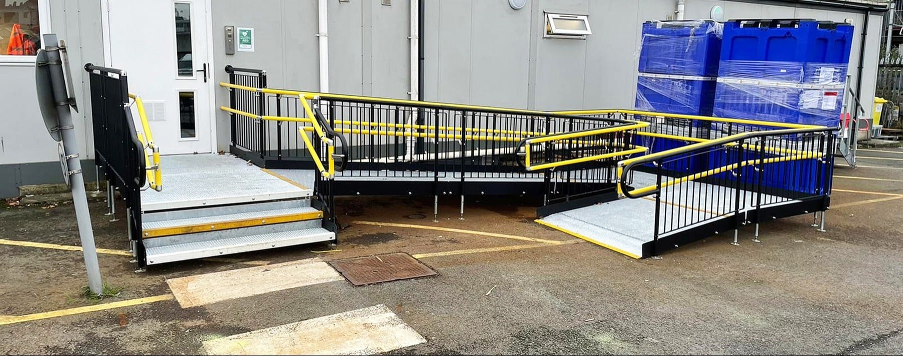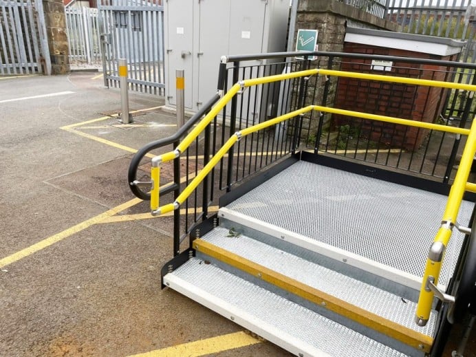 Return and secondary double handrails in yellow were included in the design. Yellow is one of the easiest colours to see due to its ability to reflect light, therefore will aid the visually impaired.