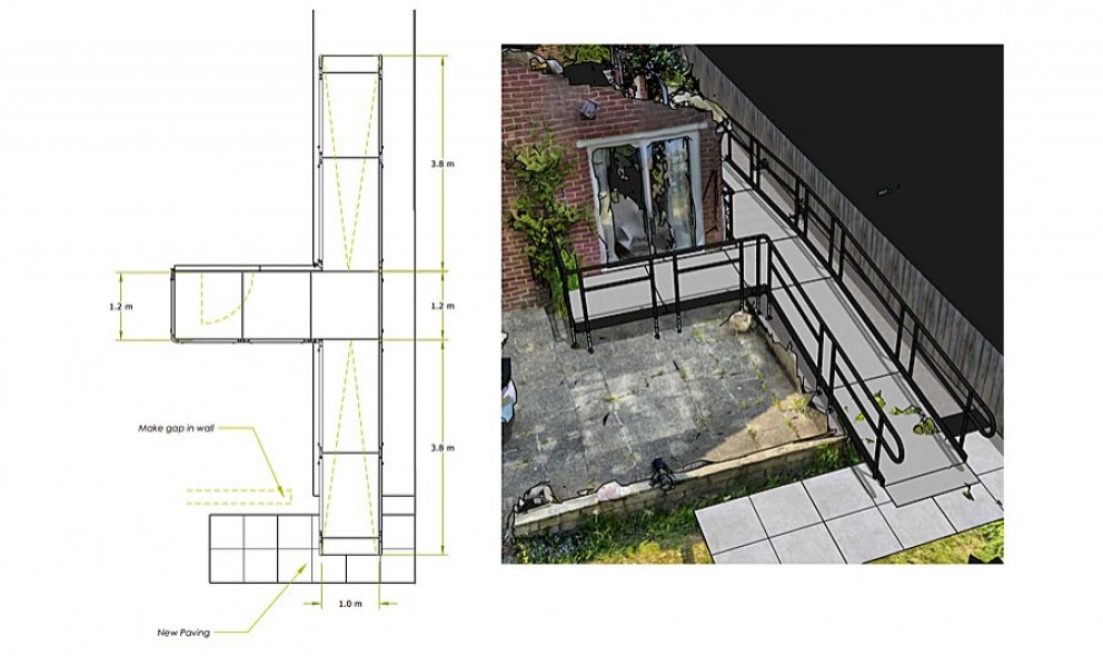 - Supply and installation of a modular ramp at the rear of the property to establish a level access point to the back door.