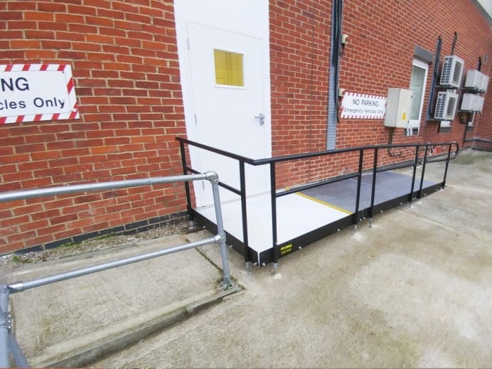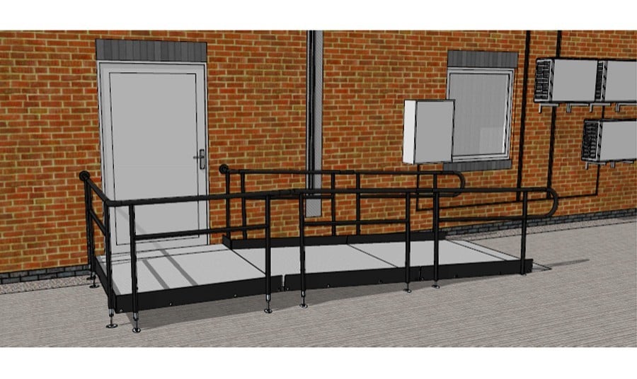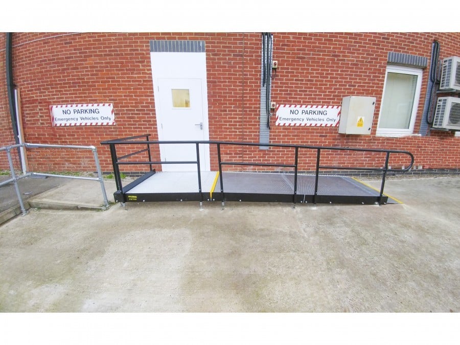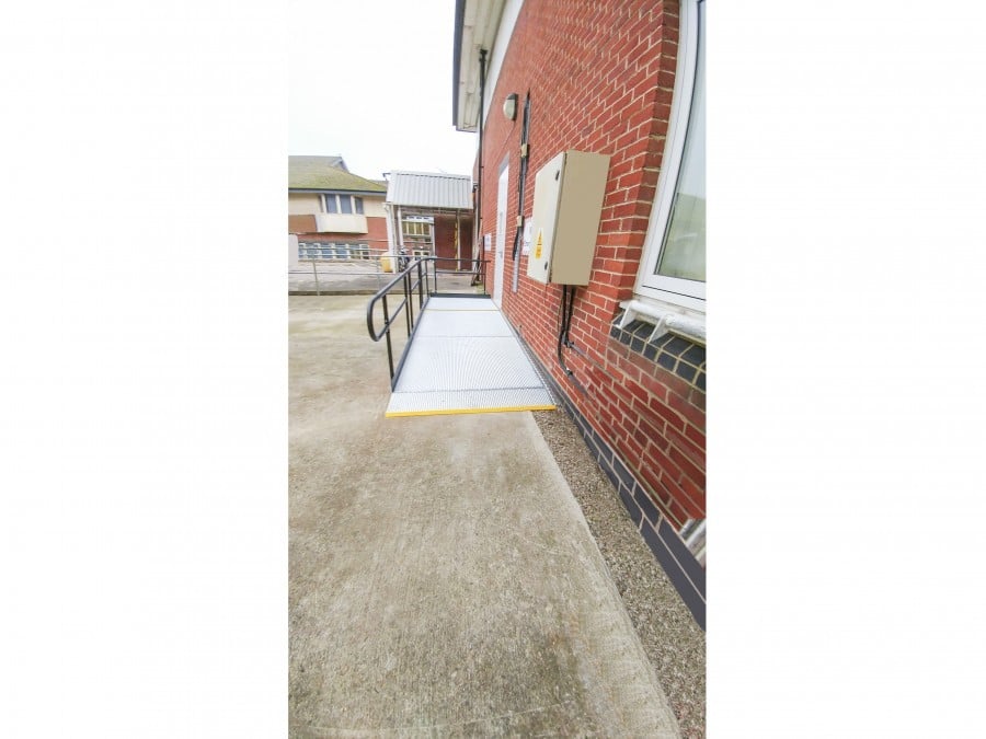 A emergency exit ramp with a 1:15 gradient was installed, after the new door had been fitted.