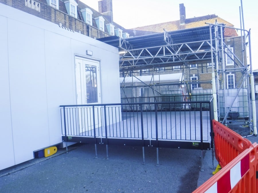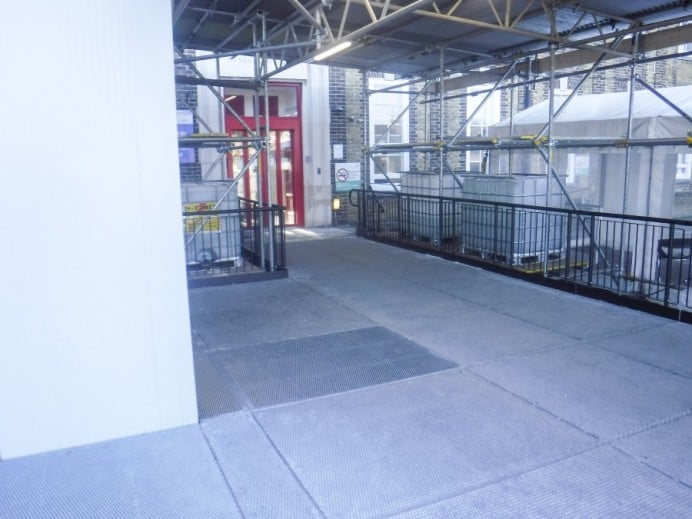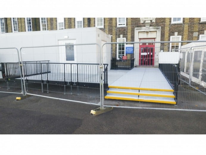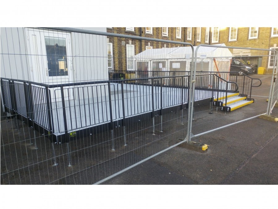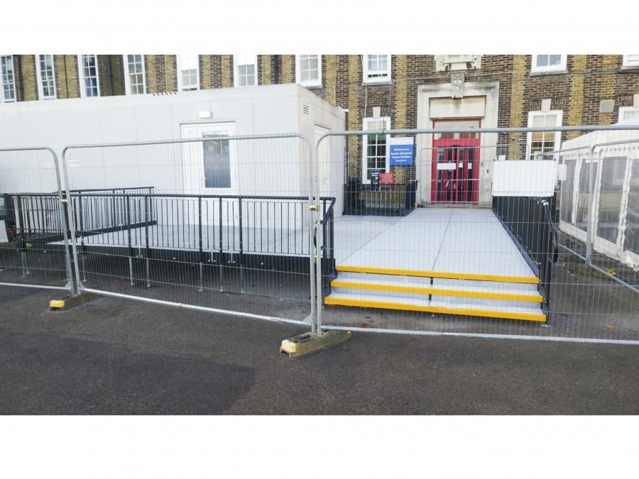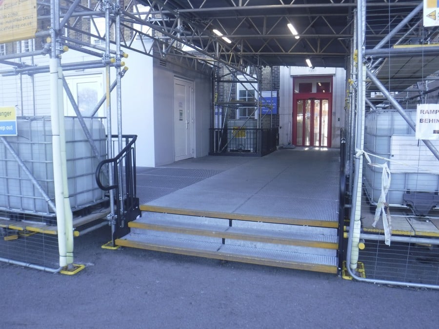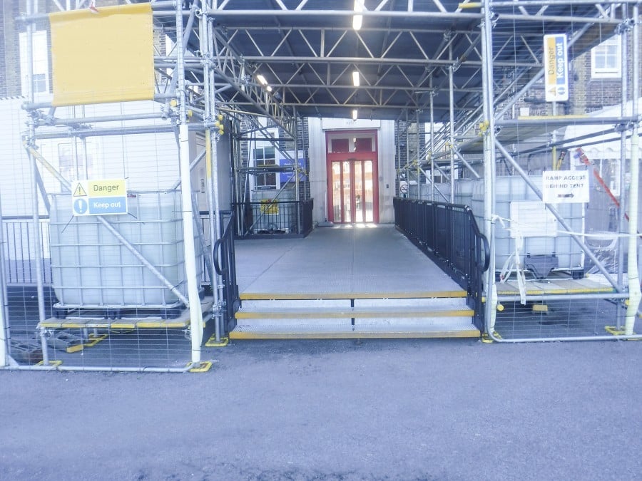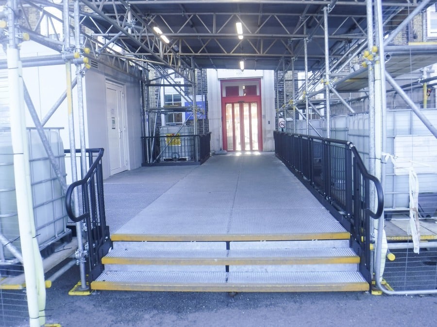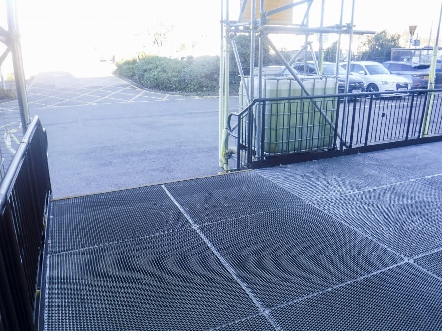 Modular platforms were bolted together to create a wide walkway, which begins from the St Peters Road Entrance.