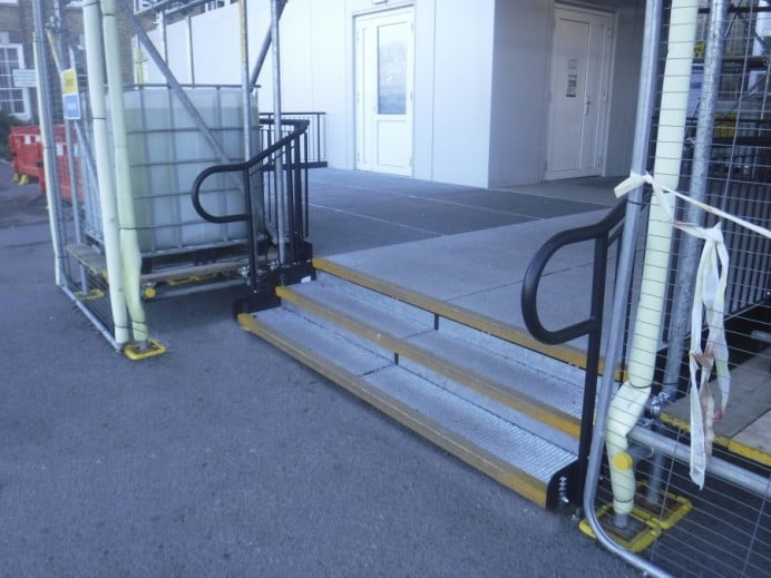 - Fully Compliant Steps – an ideal addition to any ramp installation, providing the access needed for able-bodied users. They can also be stand-alone units, independent of the Rapid Ramp System.