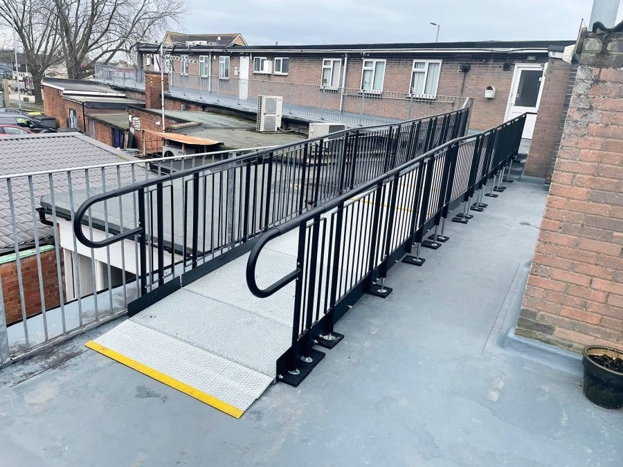 Given this was a flat roof, the Rapid Ramp System was not fixed down but remained securely in place due to its substantial weight, making it freestanding.