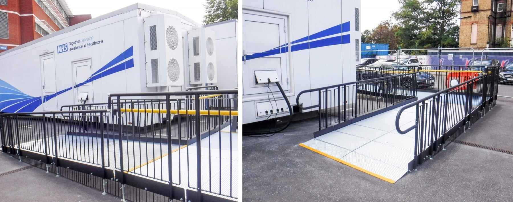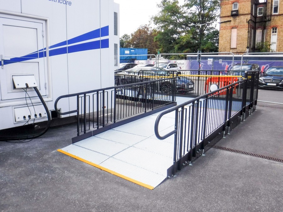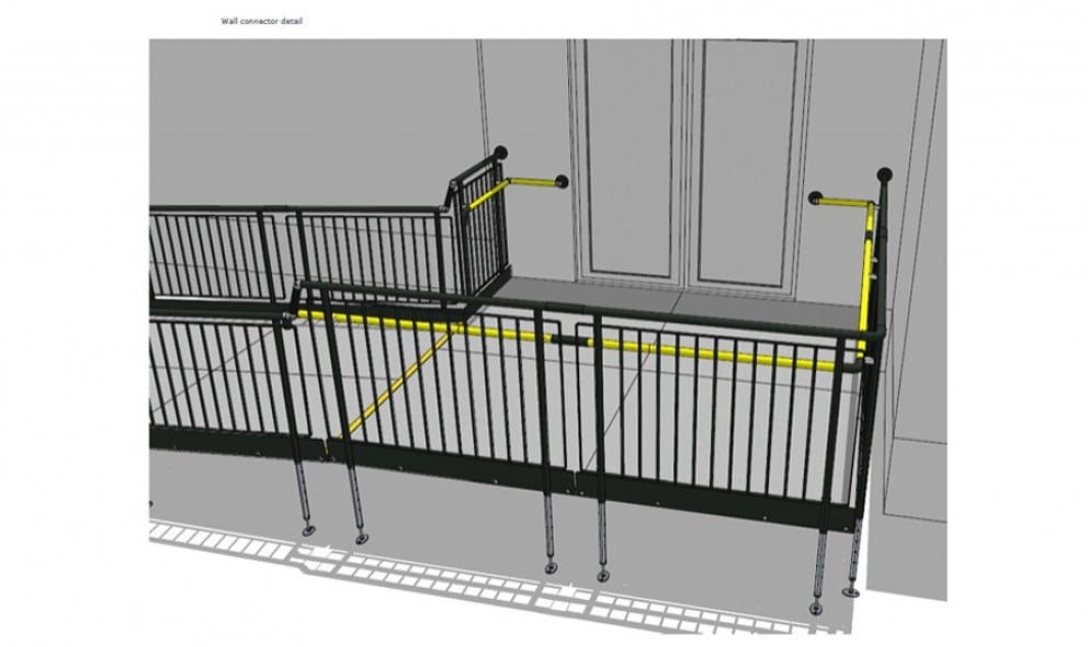 - Infill Handrail - if the ramp height exceeds 380mm, Infill handrail is a requirement to prevent users from climbing or falling through gaps.