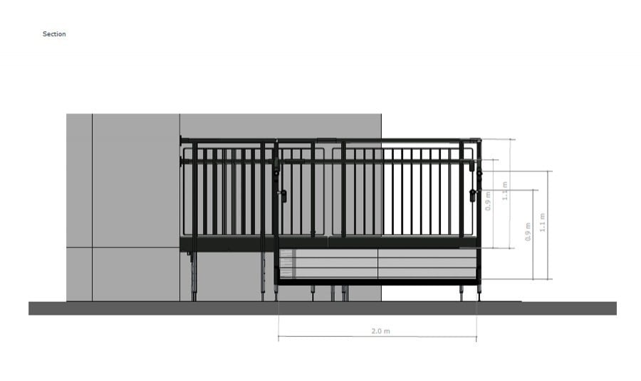 - Mesh Platform – a self-draining mesh platform allows water to pass through rather than puddle on the surface and potentially freeze. Minimum width: 1500mm.