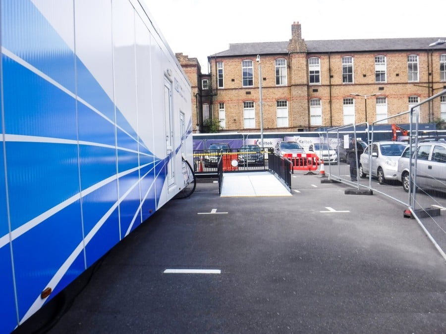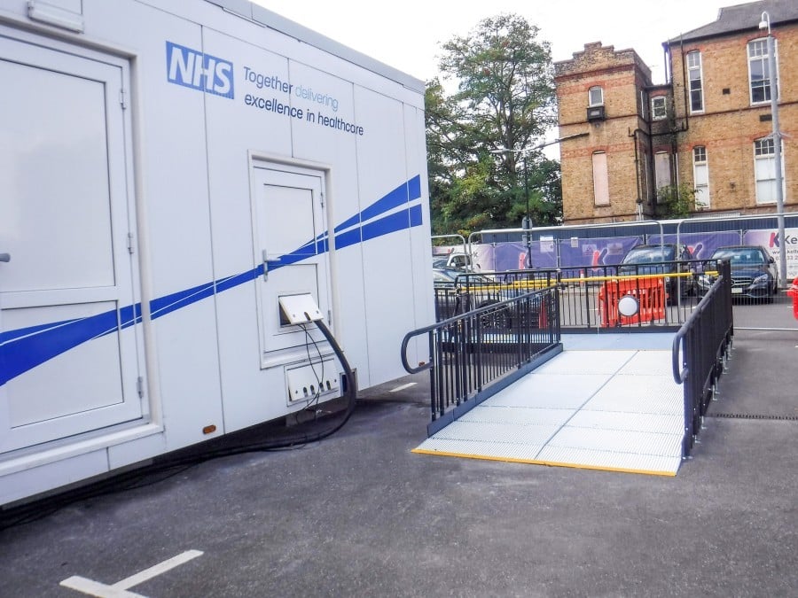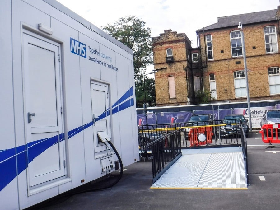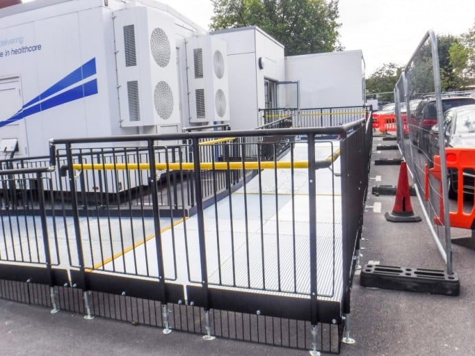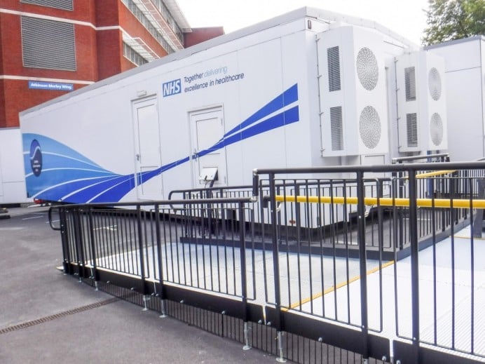 Two temporary laboratories were planned for installation in the hospital parking lot.
