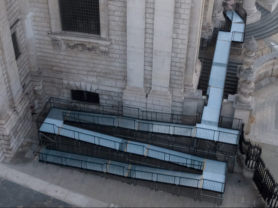 Dismantle the temporary north ramp and repurpose the components in a new ramp configuration from the south entrance, all without causing damage to the cathedral or inconveniencing visitors.