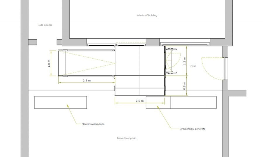 A two metre wide access platform was included to provide manoeuvring space for the wheelchair. Plus, it took only a few hours to install and was immediately functional.