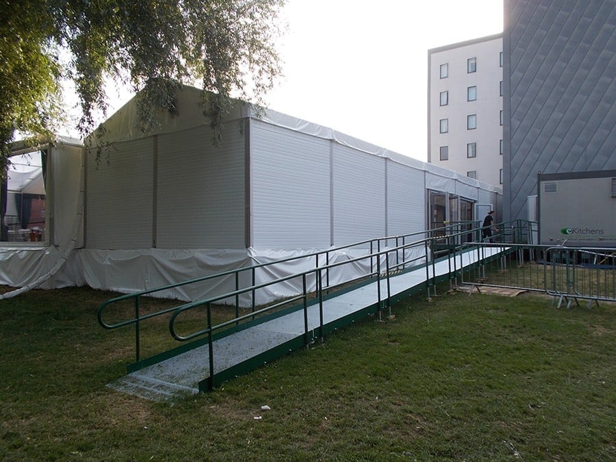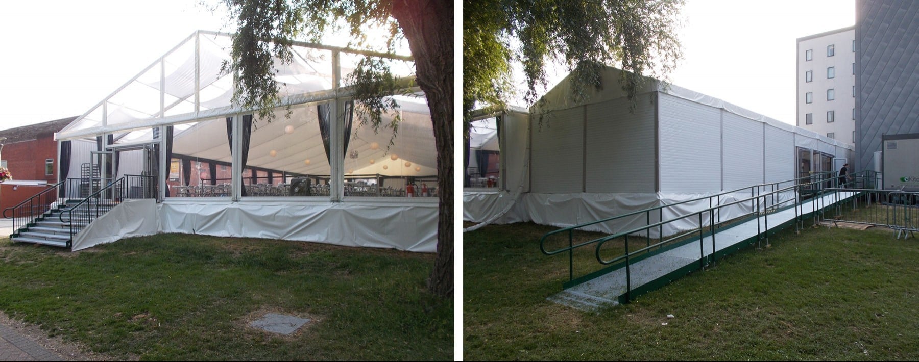 A marquee company required a temporary wheelchair ramp and step unit to their graduation tent and recognised the advantages of our steel modular systems, including: