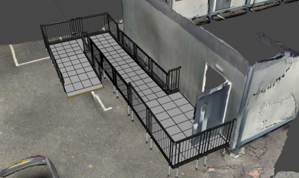 Our design team then overlaid a 3D model of the ramps onto the scans, carefully planning around any obstacles.