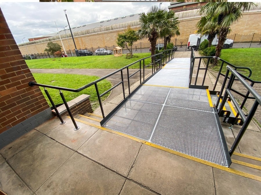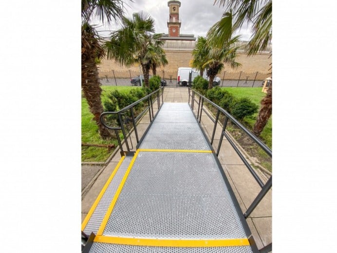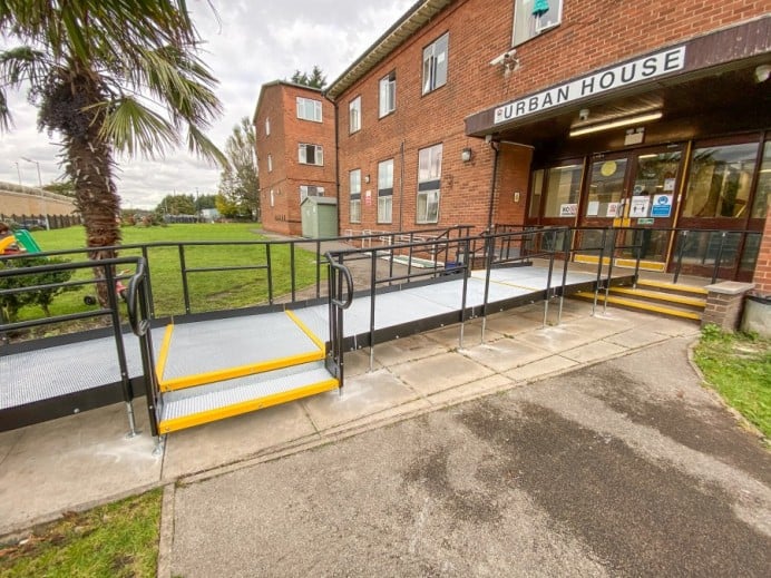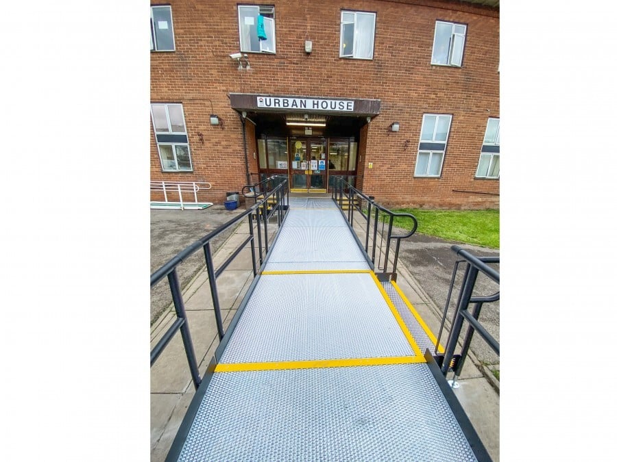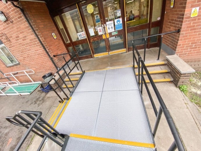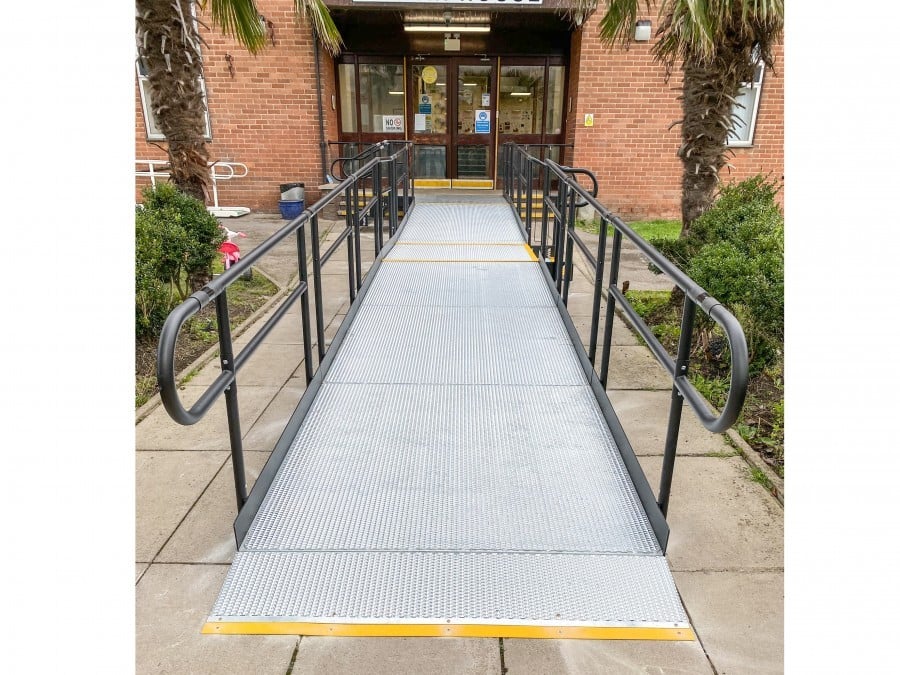 Our team installed a Rapid Ramp with a 1:15 gradient. It included two steps units and self-draining platforms.