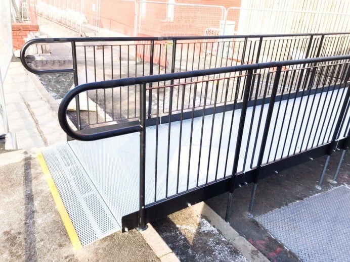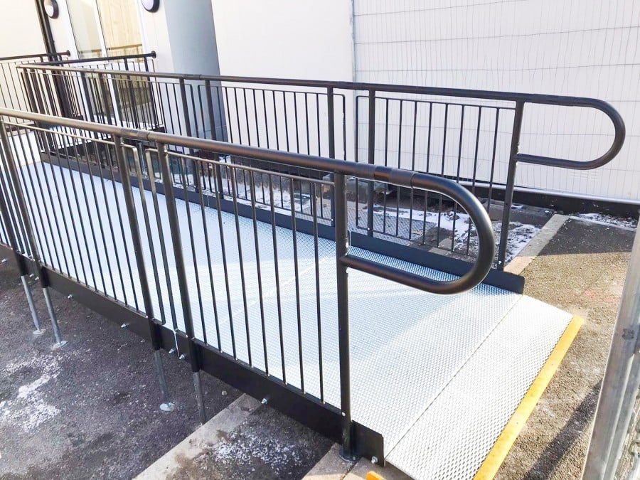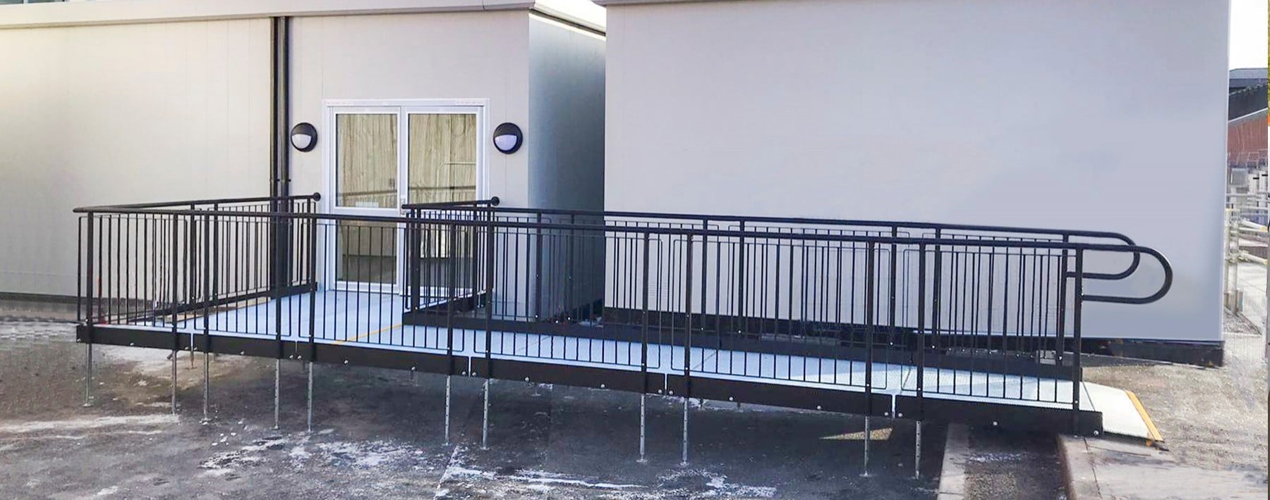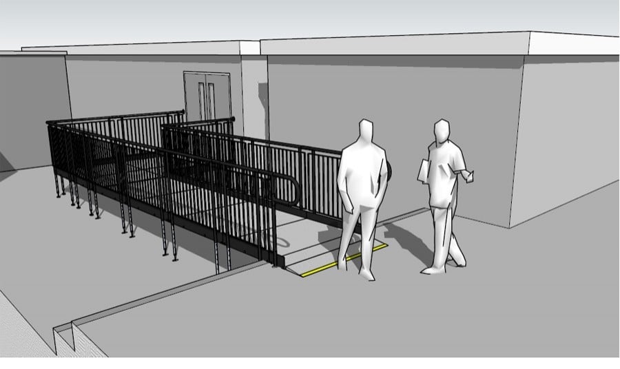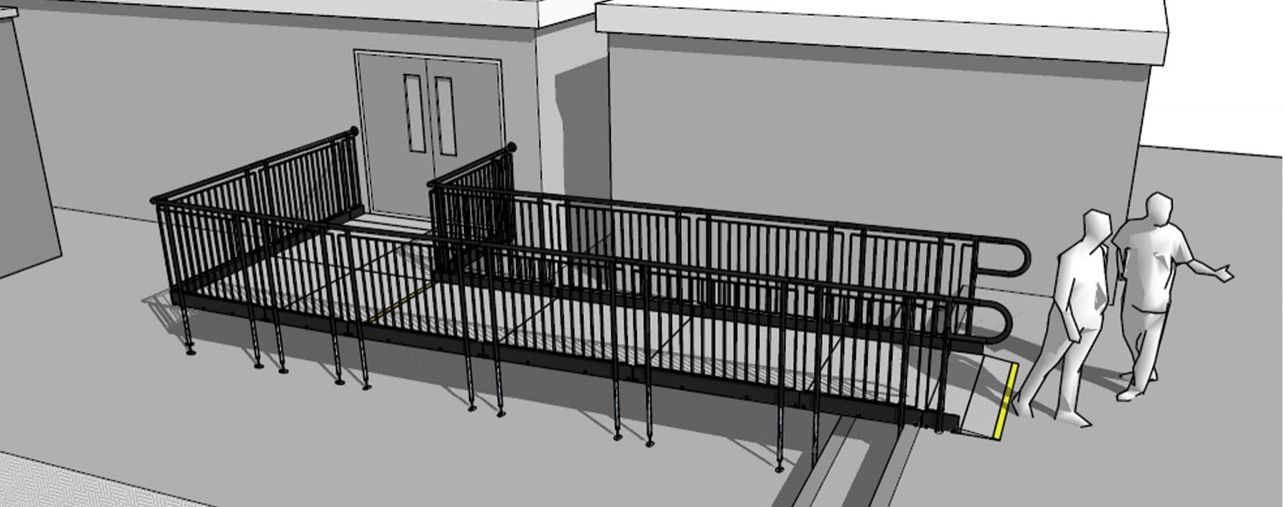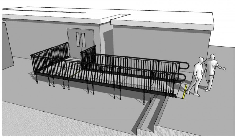 The ramp also overcomes the concrete steps that would have otherwise hindered wheelchair users from accessing the unit.