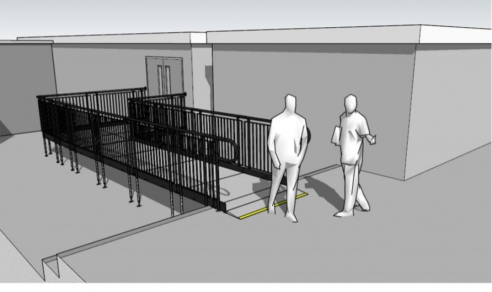 A fully compliant ramp to a temporary ward, supporting the COVID-19 vaccination programme