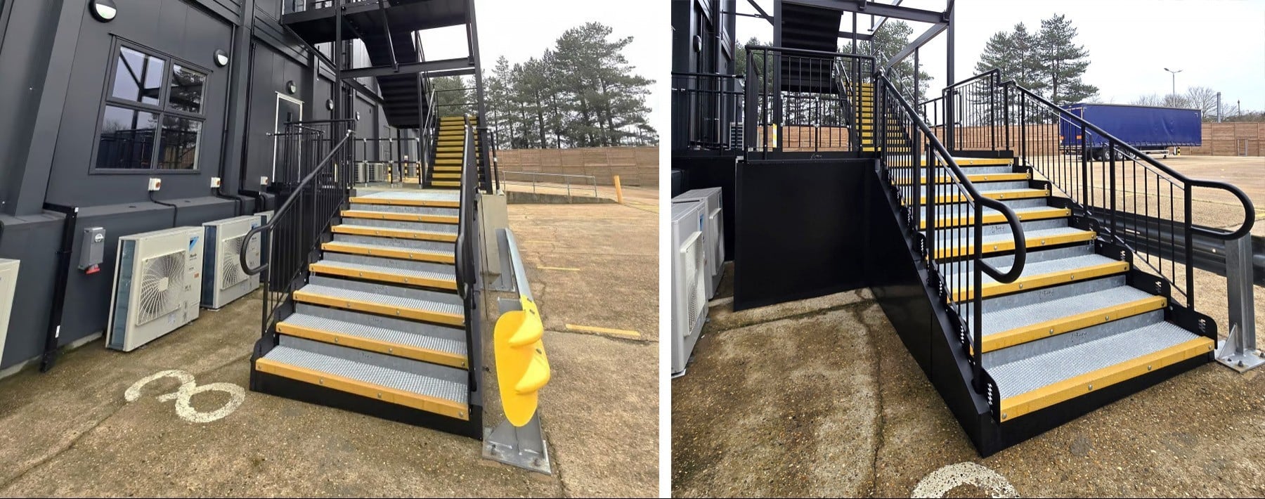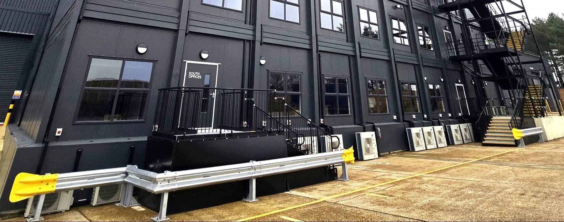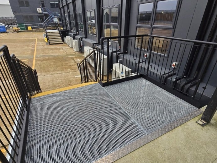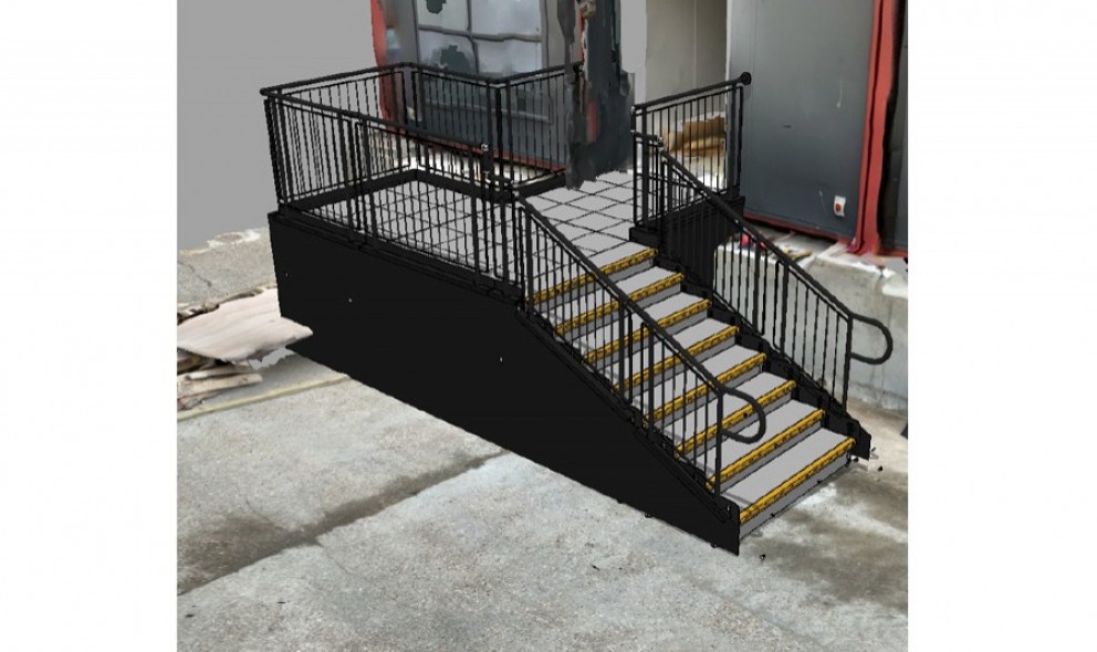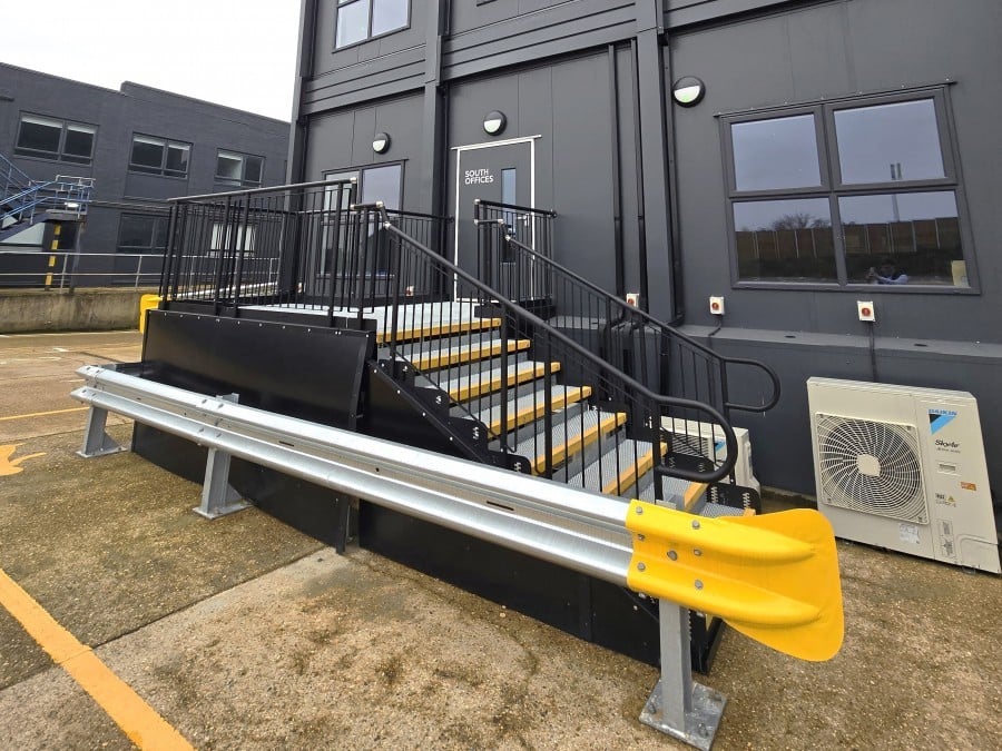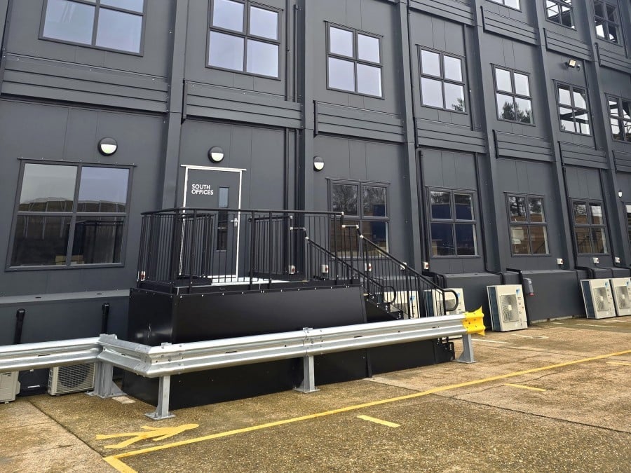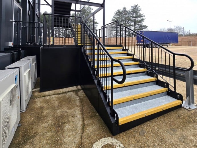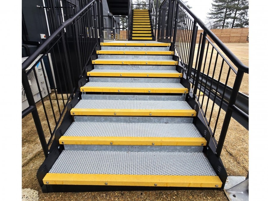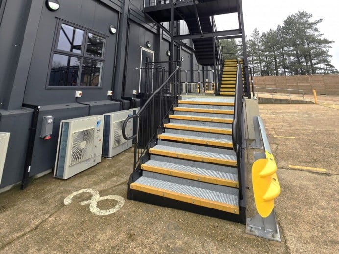 Two temporary, fully compliant steel steps were required at the south offices to provide access from the fire exit and entrance for a three-year hire period.