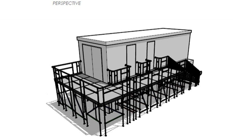 We were assigned the responsibility of providing and installing an L-shaped walkway around the cabin, complete with steps to facilitate access for site operatives.