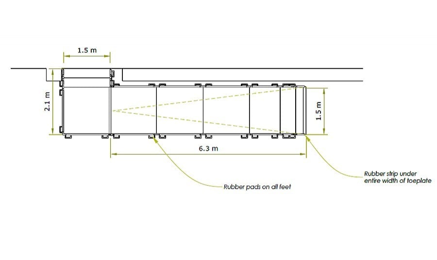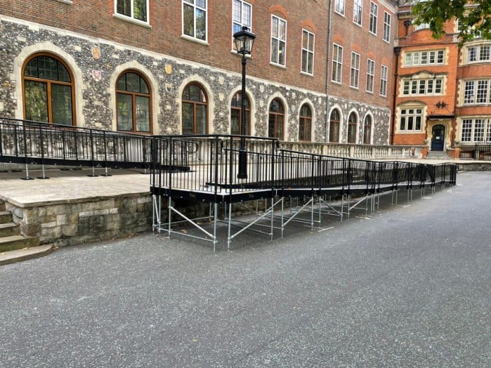 The product has an entirely modular design that makes it easy to redesign and relocate to suit last-minute site changes. In this example, Ramp 1 had to be altered from its original design. There was also a last-minute request to accommodate a marquee, which meant moving Ramp 2 over 1500mm.