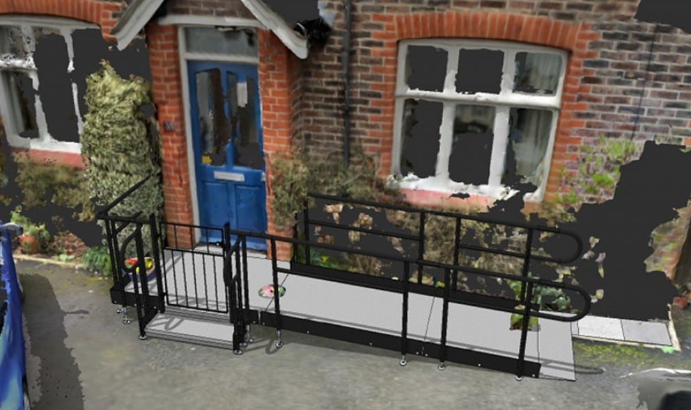 Our designer then plotted a 3D visual of the ramp on top of the lidar model. This technology enables us to continue to carry out site surveys efficiently and within a minimal time frame.