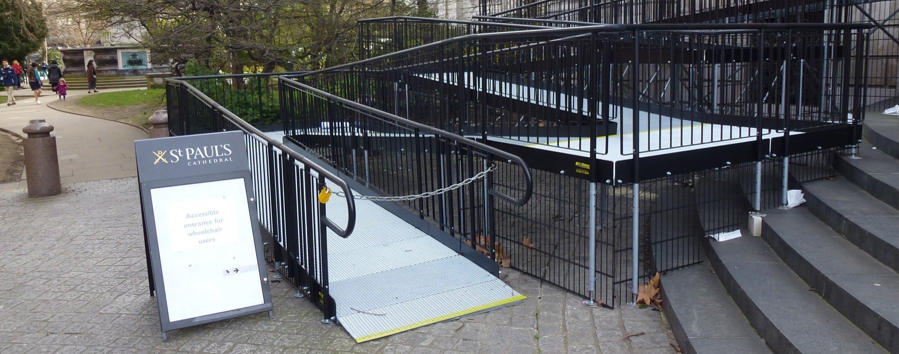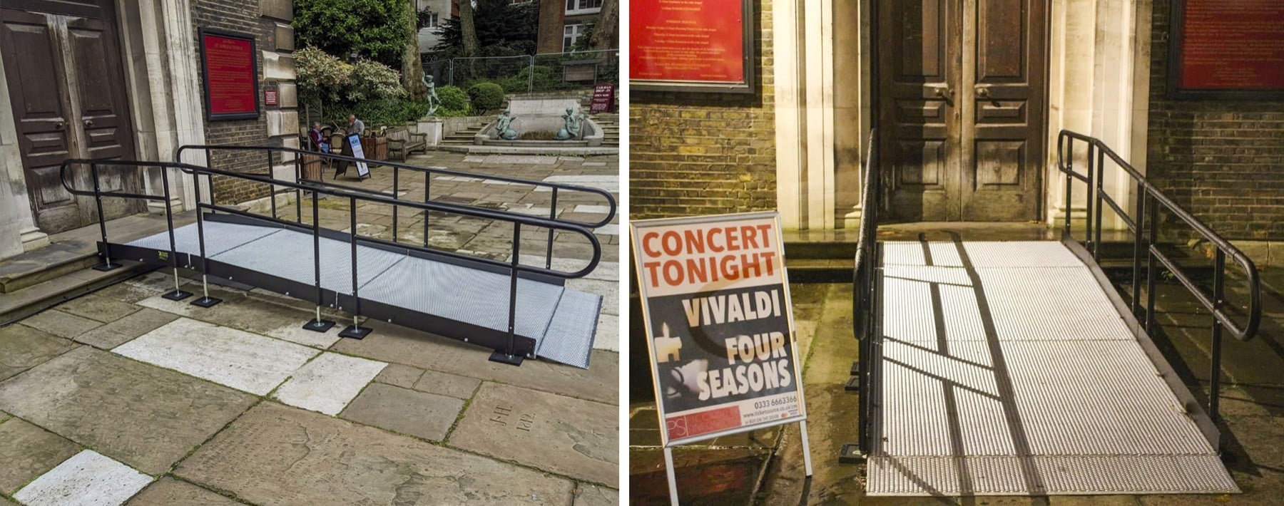 To reduce any potential impact on these historical treasures, our ramps and steps can be designed without attachment to walls. Furthermore, we offer the choice to incorporate concrete or rubber pads beneath the support feet for enhanced protection.