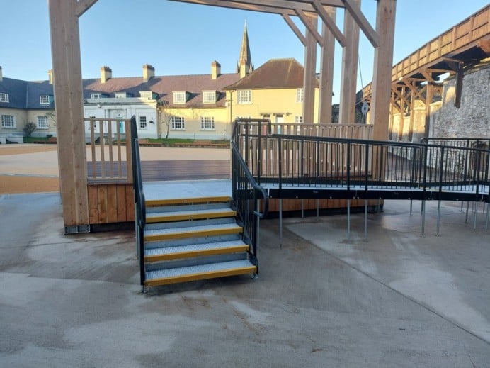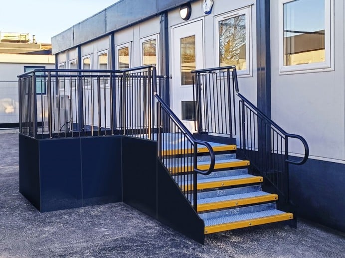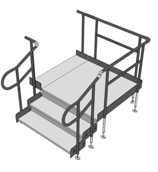 Our steel modular steps provide access for able-bodied users and can be a joining addition to a modular ramp installation or an independent unit.