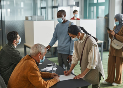 Polling station staff should set up the station in a matter that the voter can move smoothly through the process, especially if there is limited space within which to work.