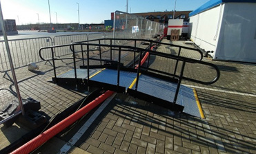 Our system can be adapted into a pedestrian bridge ramp, capable of overcoming obstacles like pipes, cables, manholes, drops, or variations in floor heights.