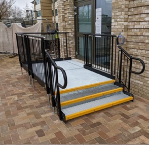 We offer different slip-resistant surfaces on our metal step system at Rapid Ramp to prevent puddle formations and slipping hazards.