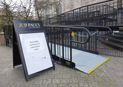 Access ramps can overcome large kerbs and provide step-free access into spaces and buildings.