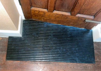 For small kerbs, a rubber threshold ramp can be placed down and allow the wheelchair users to overcome the change in level.