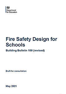 -The Building Bulletin 100 (BB 100) produced by the Department for Education - The guidance covers life safety (compliance with the Building Regulations), school-specific fire risks, property protection and fire safety management (p6). >More Information The Building Bulletin 100 (BB 100)<