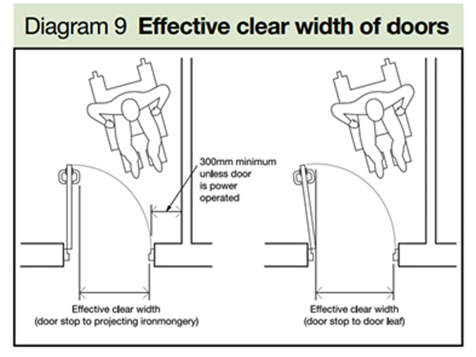 Regulations in the UK concerning door widths differ based on the type of building and whether the door provides public access.