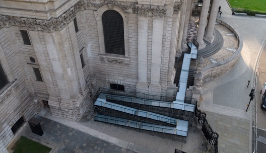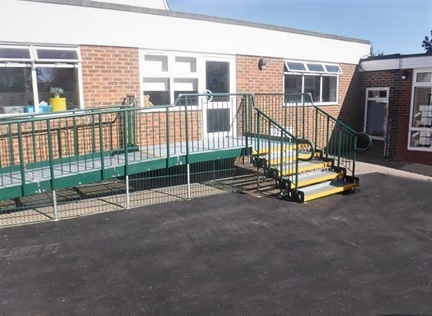 Ramps and steps for temporary public buildings must comply with the Documents M and K of the Buildings Regulations.